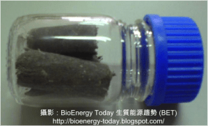 自古以來,人類堆起木材點火燃燒,就是一種固態生質能源的利用方式,原料經過轉換以後,最終以熱能形式被利用。當代最重要的固態生質能源,應該算是固態廢棄物衍生燃料技術(densified refuse derived fuel, 或RDF-5),它指的是對原料進行物理前處理後,再將成品送入鍋爐燃燒發電,或是進一步與其他物質行氣化、裂解反應的能源利用方式。其原料可以是都市廢棄物(例:家庭垃圾)、農林廢棄物(例:廢木材)、一般事業廢棄物(例:廢紙漿)…等。圖1為造紙業廢料生成之RDF-5燃料錠。
