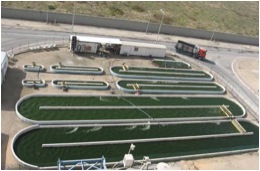 圖中為美國Seambiotic公司的跑道式養殖池,僅利用水車促使水流在跑道式養殖池裡流動。其優點為能量輸入更少,僅需提供水車轉動的電量即可。而且跑道式的設計比圓形池能更妥善利用空間。然而缺點也是因僅依靠水車轉動,攪拌不像圓形池均勻。