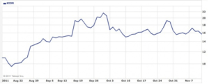 KiOR掌握著利用木屑作為原料,透過催化劑與熱反應生成粗油的技術。KiOR發佈了第三季淨損失為1480萬美元,去年同期淨損失為1060萬美元。目前為止KiOR尚未有任何營收,預計需要到2012年中在哥倫比亞的廠房完工之後才會開始產生營收。