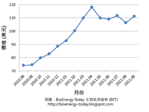 4. 沙國王子發表這段談話的時間正值利比亞內亂動盪推升油價之際,過去一年的油價變化請見下圖: